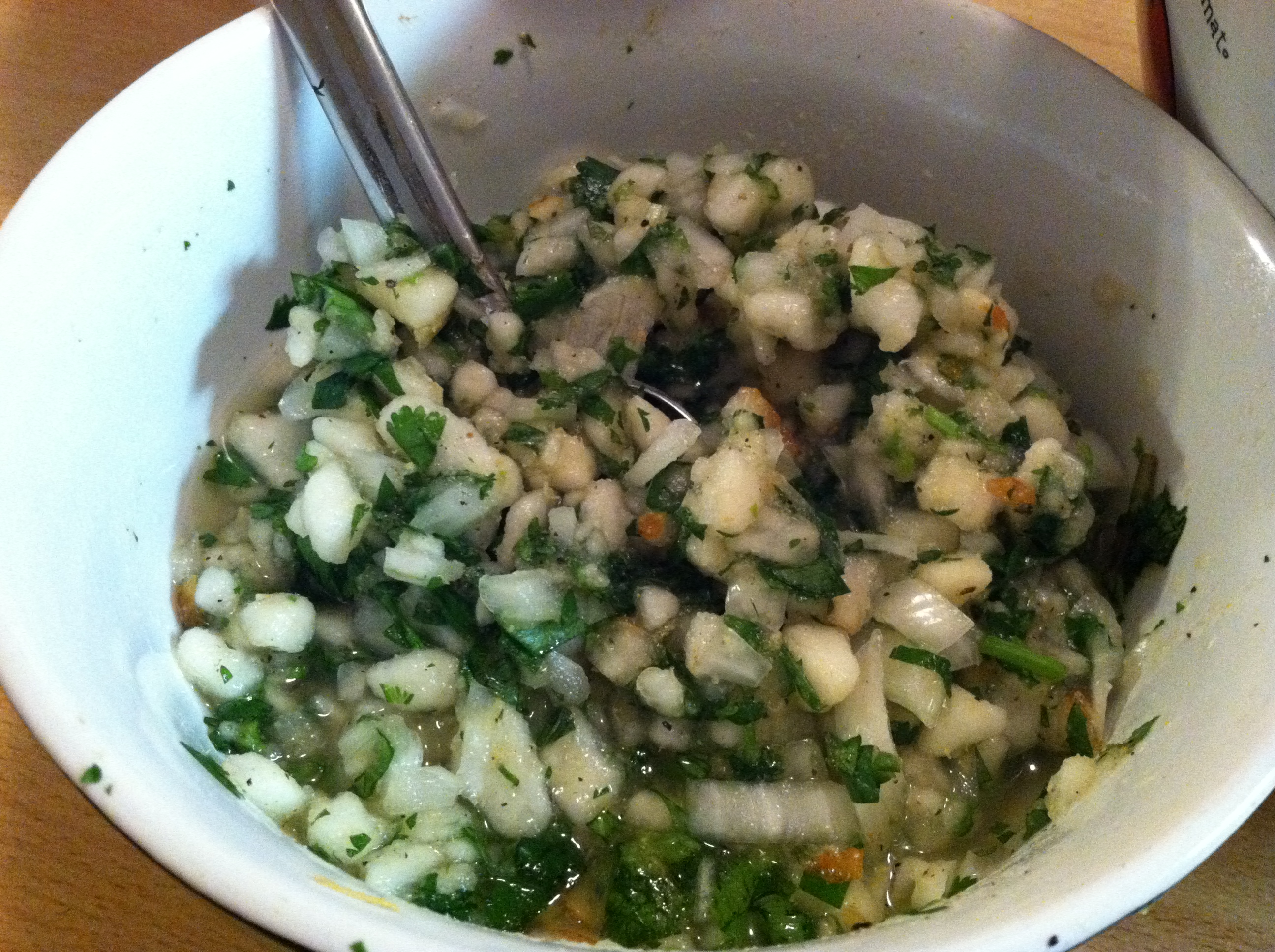 In the pear salsa, I was going to substitute Asian pears for the Bosc, because of the observance, but had no luck finding them.  Had to stick to the darn recipe!!  I didn’t use too much of the (hot) pepper because it can get supper spicy.
