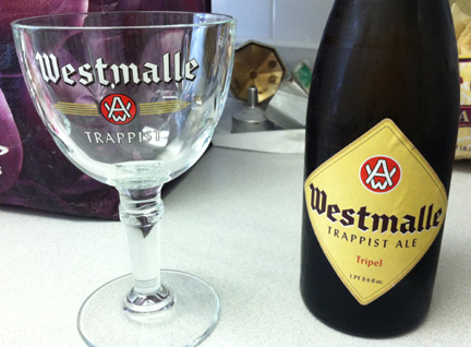 #2: Westmalle Trappist Ale Tripel. It was the kickoff to college football. Great Belgian beer to enjoy while sitting on the couch watching sports for many hours. This stuff is potent — 9.5% alcohol! It’s good to be watching football because you don’t want to drive for awhile and the food you eat while being sedentary for hours on end soaks up that percentage. My friend served it in the appropriate glass to which you fill to the 33cl line.