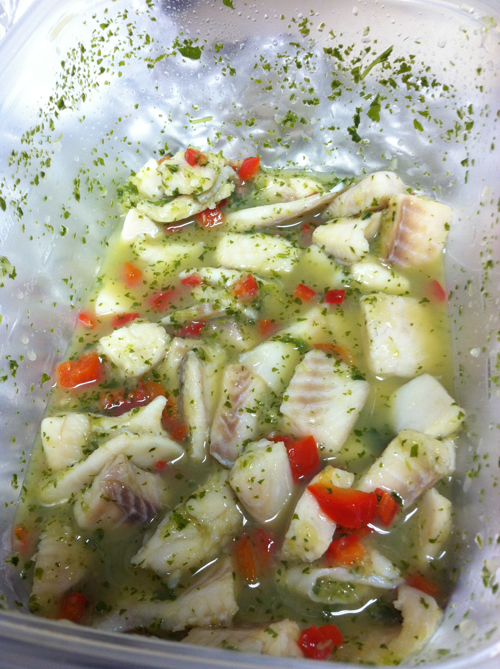 My favorite dish to pin this thought to is my friend’s ceviche. It’s like a comfort food to me (that food/dish in general). She’s from Costa Rica and they/she just have/has magical ceviche hands, or something to that effect. All that’s in the dish is white fish, onion, red bell pepper, cilantro, lime juice…and patience. For the juice, she hand squeezes every…single…lime. And, her ceviche must sit overnight (some recipes vary).