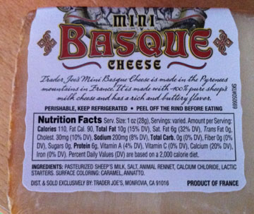 When at (one of) food shopper’s heavens the other day, Trader Joe’s, I was actually shopping for cheese. Yes, cheese. I was initially just going to grab some Manchego but then decided to see how many labels I could read to determine which ones had sheep’s milk (vs cow’s). After going through a good bit of the cheese case, I did find several that I could eat, being lactose intolerant. I found this new (to me) one that looked intriguing. One of the Crew Members walked by and I asked if he’d had it before to get his thoughts. He said…not yet. He took it back to the sampling area and opened it open so we could both try it. Awesome customer service! And, amazing cheese. A bit softer than Manchego but a bit harder than cheddar. It’s Mini Basque Cheese from France. Totally buy some. You won’t be disappointed.
