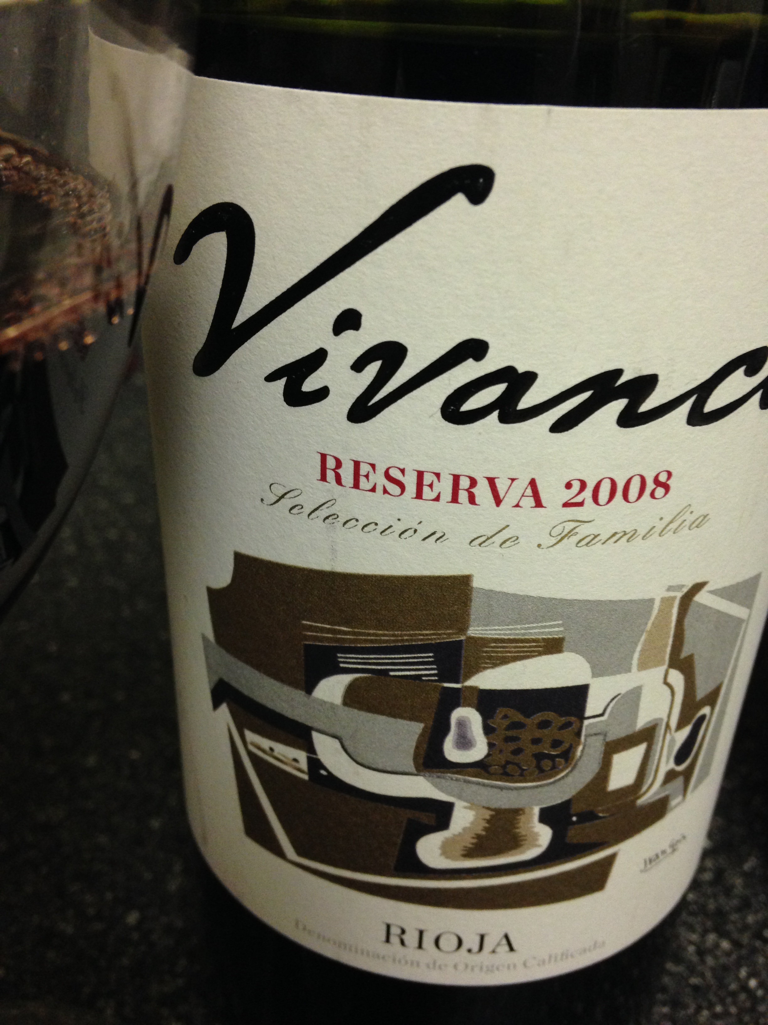 Popped open a new bottle of Rioja last night that I found in my wine rack. Don’t know when I bought it or if I knew why I bought it. It was Vivanco Rioja Reserva 2008. Wow…very nice. The nose had light oak on it. The wine itself had some fruit — I got cherries and strawberries, and a bit of spice. I saw on the label that I had scribbled $24. DIdn’t see that before I opened it, just to have a glass of wine with a weekday dinner. Oh well, definitely worth it.