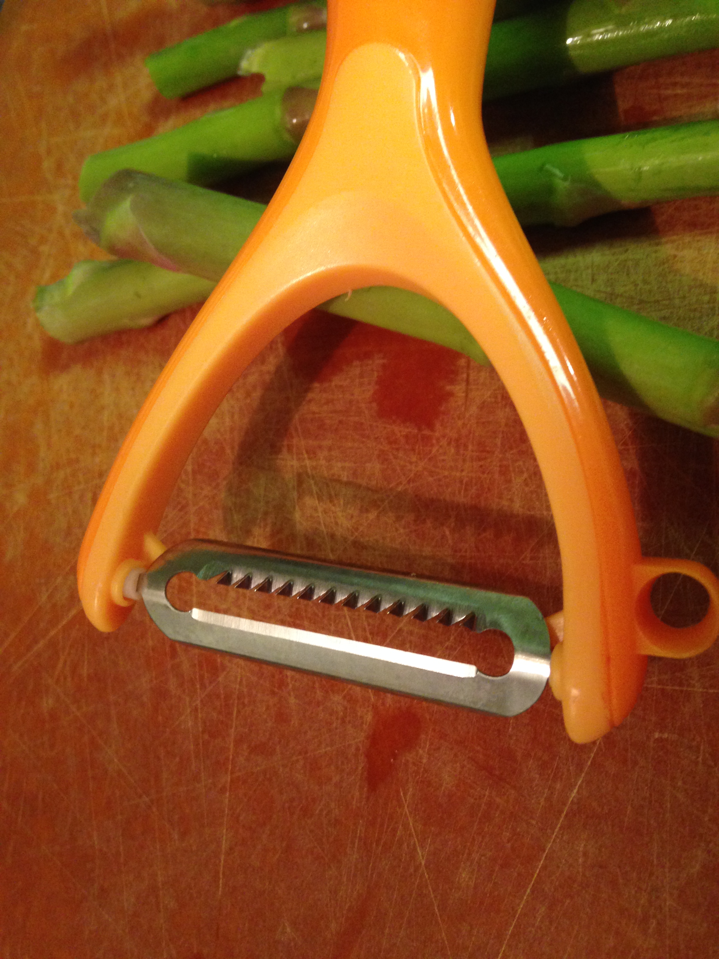 For the asparagus, it is never too easy to shave them. I’ve had this one veggie peeler that is supposed to be good. Have you ever seen or used one of these? I always try to give it another shot. It scrapes, cuts and just does not make anything easy.