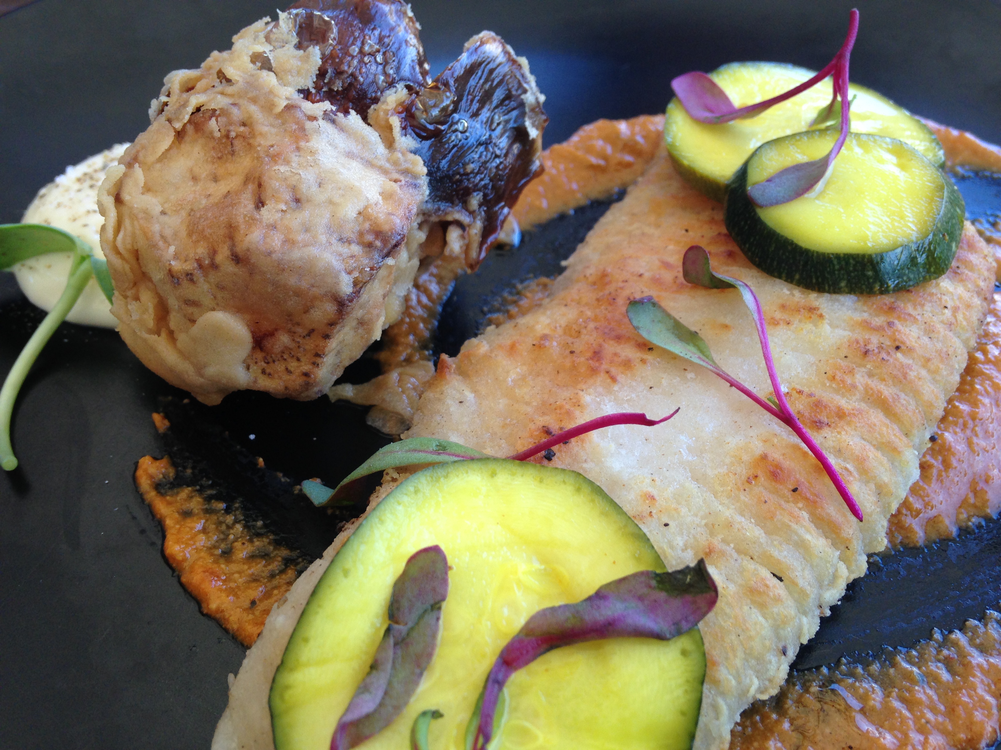IMG_3581Next up, Skate, which is a mildly-flavored fish.  This guy was served with sunflower seed romesco, a fried artichoke and pickled zucchini.  Very nice!  Had never had an artichoke like that.