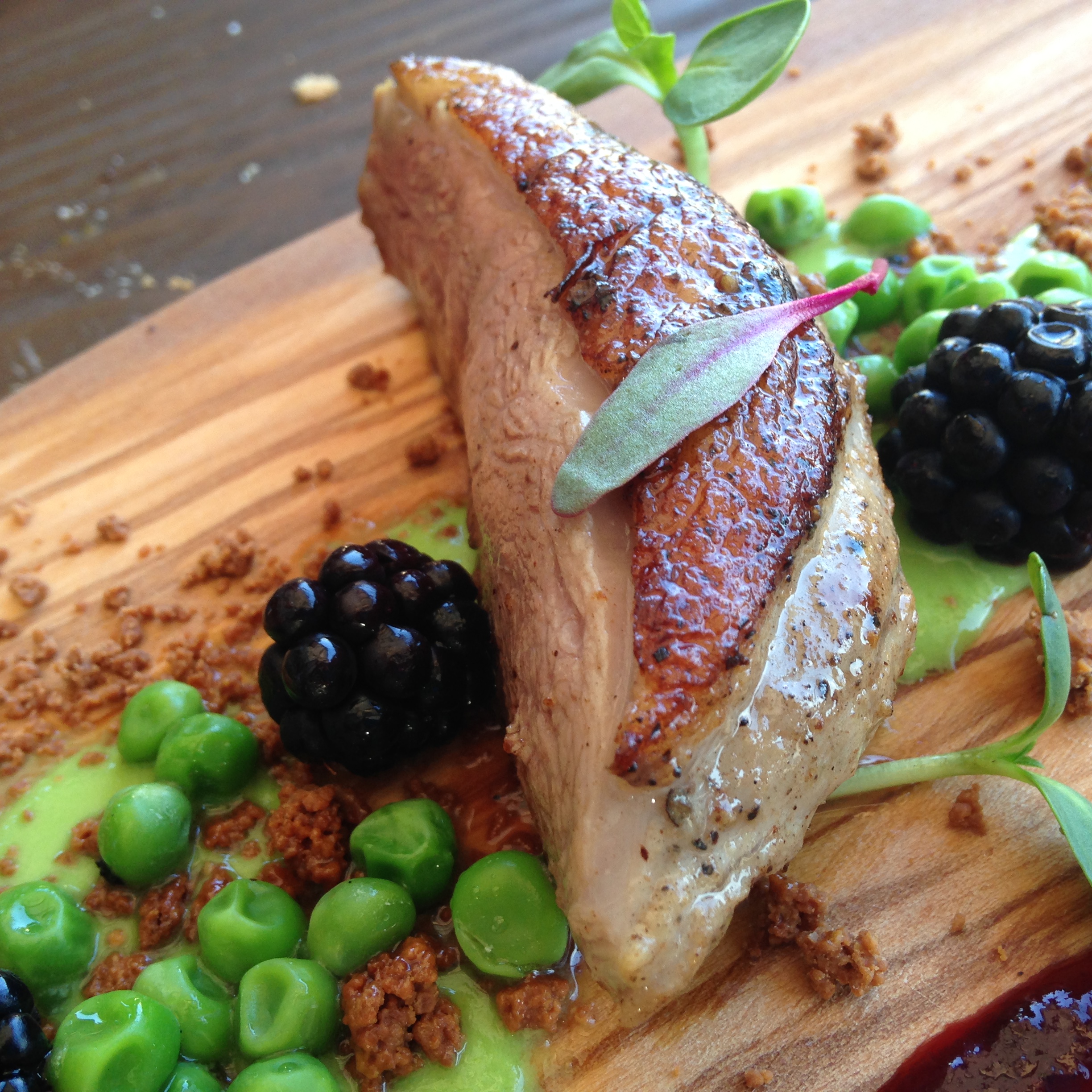 IMG_3589Needed more meat so we ordered some duck, which was a fennel & juniper cured breast, english peas, blackberry gastrique and fresh blackberry dish.  Another one that was out of the park.