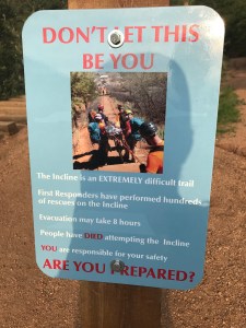 I made my way to the base, saw all the signs telling people they are in crazy danger, etc, etc and off I went. Of course it’s not bad at the start (elevation of 6,600 feet) but then it just changes as the step height changes (and I’m not super tall) and the elevation increases.