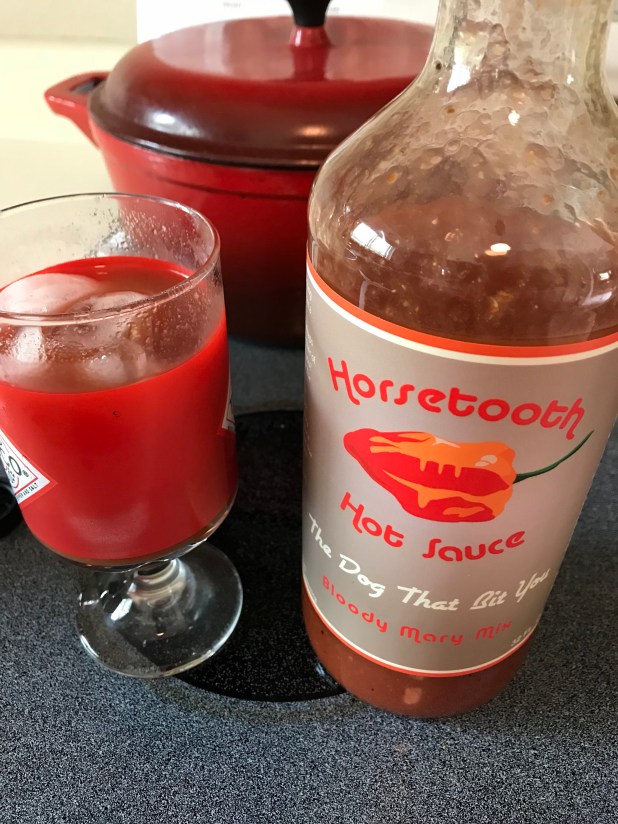 Love supporting local businesses. Also love Bloody Mary’s. A new mix for such concoctions I have stumbled upon since moving to CO is Horsetooth Hot Sauce‘s. They have two levels of it.
