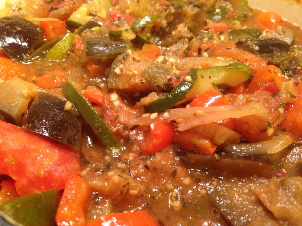 Was in the mood for something hot and veggie-y and for some reason ratatouille came to mind. Hadn’t made it for awhile and couldn’t find a recipe on hand, so what else to do than google it? Came across a recipe on Bon Appetit that received many stars.