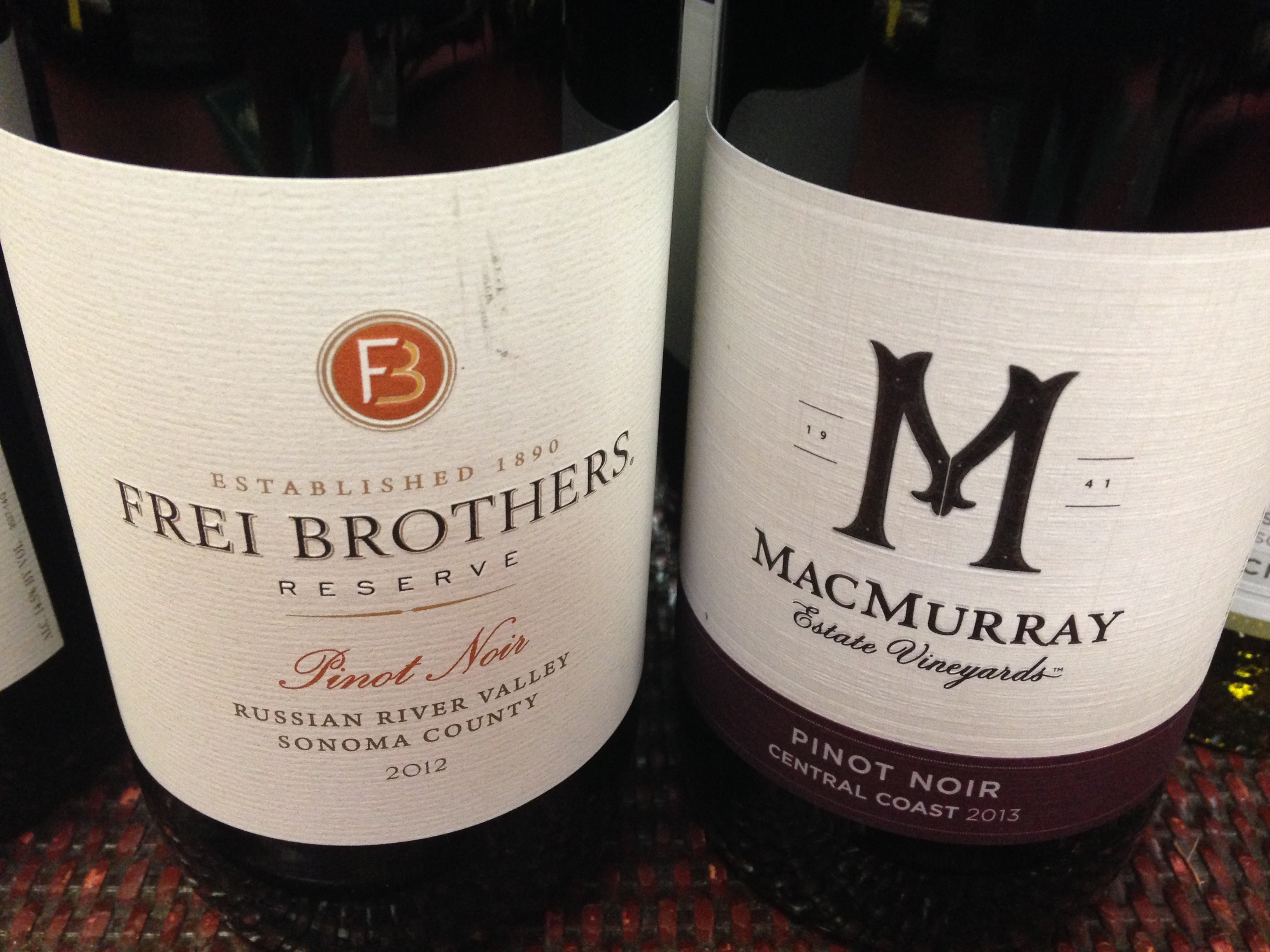 The two reds were both Pinot Noirs from California, but very different. The first was Frei Brothers in Russian River Valley. Very light with the traditional fruit notes. Would pair nicely with a salad or light/white meat or seafood. Fruit would be great too, or why have food with it? Come on.