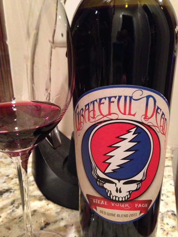 There is a joke in my family about the Grateful Dead because of a Santa mistake that happened years ago. So anytime we see anything related to the band, we tend to get it. Normally it has to do with those cute little dancing bears. Well, now life is getting so much better! My Christmas present from my aunt and uncle was Grateful Dead wine. I’ll take that. The name is ‘Steal Your Face’ and it’s a blend (85% Syrah, 15% Petite Sirah) from Mendocino County. Great table wine, perfect for any dinner.