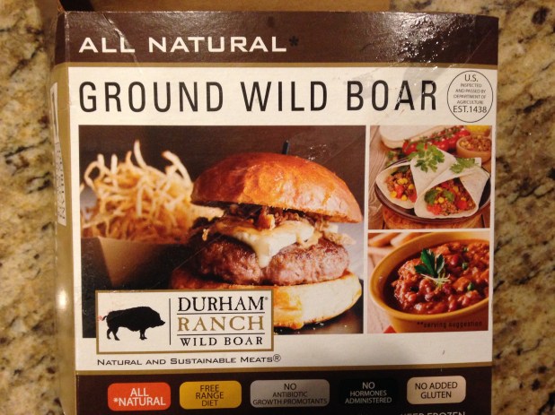 When I go to Colorado I always get to check out this great grocery store, Sprouts. They always have fun stuff to check out, especially meat that is not super easy to find. The latest one I checked out was Ground Wild Boar. I will always remember how much I loved Warthog when I was in South Africa a few years ago and this seemed like it might be fairly similar. It is ‘… all natural and feral from Texas. It is trapped in the wild and processed exclusively under the Durham Ranch label. Each animal is hand selected and sited to our exact specifications.’ It is also a nice lean meat and was absolutely delicious. I wish it was easier to get. We just made it into patties and threw it on the grill.