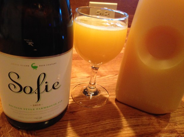 So I had to do a training recently about Goose Island‘s newest ‘campaign’ — the Sofie-Mosa. It uses their relatively well-known Sofie Belgian Style Farmhouse Ale and OJ. Hmmm. Where did they get that name? I tried it after the training. That stuff is pretty darn good. And, think about the ABV on beer vs. bubbly…about half. Sofie is 6.5%. I’m not advocating going crazy, but you’re not going to get as tipsy having the Sofie-Mosa.