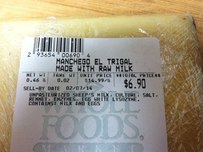 When I was at Whole Foods I also came across some Manchego that was on sale.  Love Manchego because I can actually eat it because it’s made with sheep’s milk vs. cow’s milk.  Lactose intolerant folks can bear it!