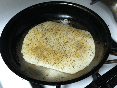 Unfortunately neither of the guys at the seafood counter had any idea how to cook it so did a little research while waiting in line to check out.  I found info that said season and pan sear for about 1 minute per side.  That sounds easy enough.  I just used for garlic salt and Florida Seasoning from Penzey’s for seasoning.