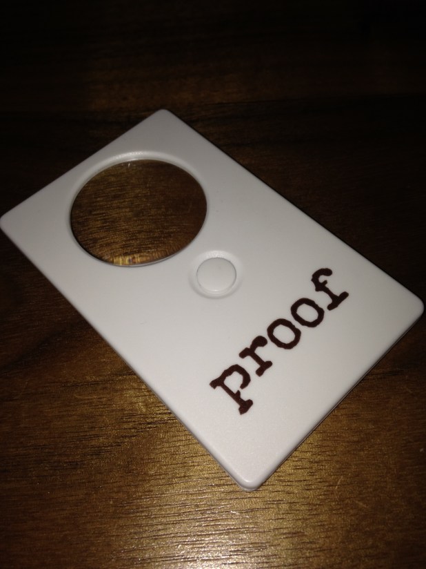 We sat down at the table and it was extremely dark. The picture above is a flashlight you can use to read the menu. It’s both a flashlight and magnifying glass. The print is very small on the menu. I have really good vision and was having problems. The waiter said that is the tone/ambiance they want to set — darkness, it’s a better mood.