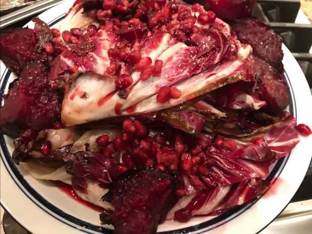 Was looking for a new recipe for Christmas dinner and wanted something colorful. Came across this one when flipping through Bon Appetit magazine – Seared Radicchio and Roasted Beets.