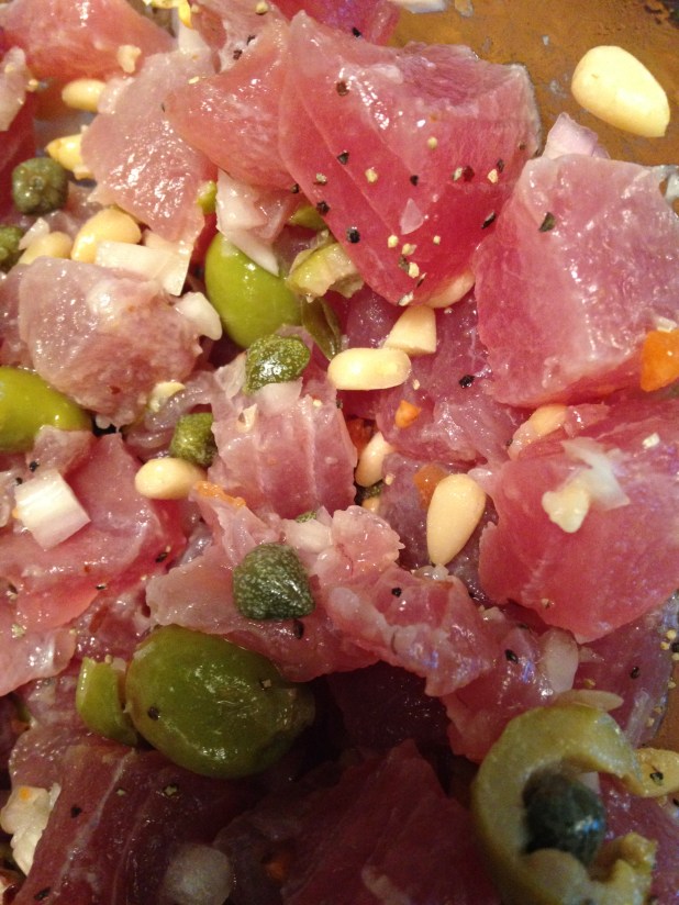 After that, we just wanted one other simple bite to eat. Opted for the Tuna Tartare / Gingered Soy Sauce / Blistered Shishito Peppers. It was around $7 or $8, I think. Good size portion. Now, I just snapped a small shot of it, but there were probably about 4 times as many pepper around it as tuna. And they were hot! I didn’t touch them, the other eater did. From far away they could look like okra. Dang, fiesty! Nice presentation, but the restaurant could save a lot of peppers. The tuna was amazing, though.